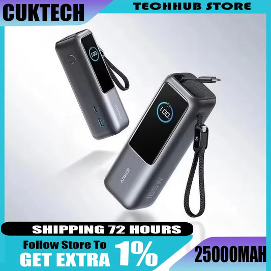 Anker Zolo Power Bank 25000Mah 165W Max Fast Charge High Capacity Retractable Cables Mobile Phone Power Bank Lightweight PC
