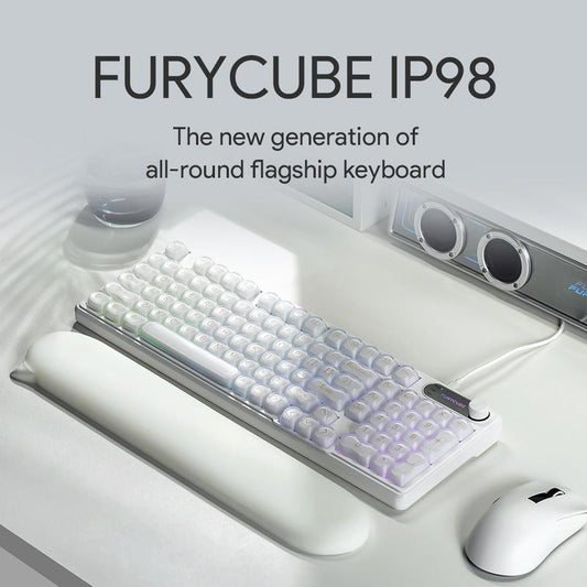FURYCUBE IP98 Foundation Membrane Keyboard,98Keys Keyboard,Wired Keyboard with Number Pad, Silent,Media Knob Custom Mechanical Feel Keyboard,Rgb Backlit Ergonomic Office Silent Computer Keyboard for Pc,Mac,Ps4,Xbox ONE Gamer